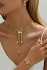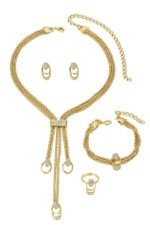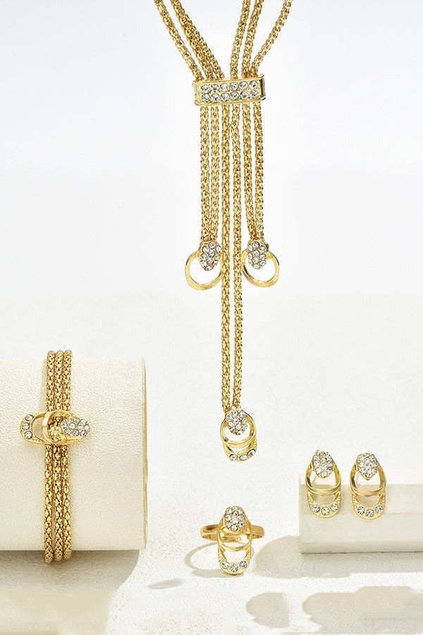 Simple and Fresh Diamond Necklace Earrings and Bracelet Ring Set
