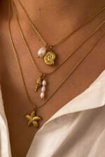 Stay stylish with this gold conch starfish dainty necklace! This beautiful necklace is made of mother-of-pearl and stainless steel charms. Will give your wardrobe a fresh and sweet look!
