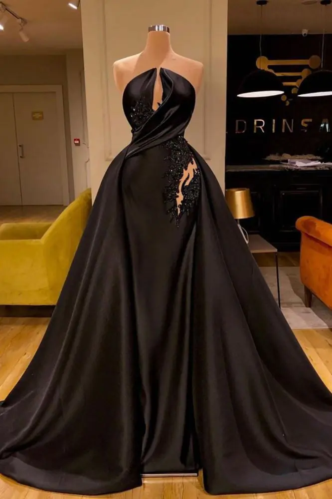 Sleeveless Black Evening Gowns Charming Mermaid Sweep Train