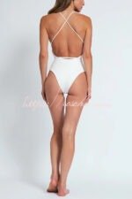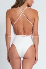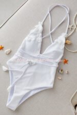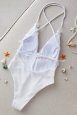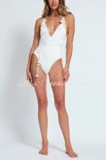 Solid Color Lace-up Flower Decoration Stretch One-piece Swimsuit