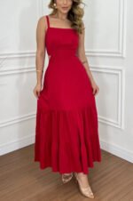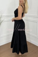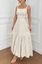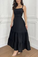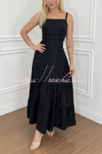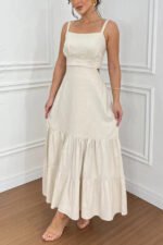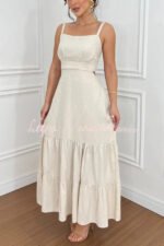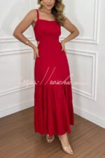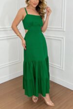 Solid Color Sleeveless Pleated Back Waist-baring Maxi Dress