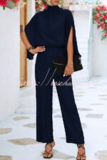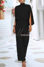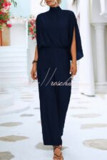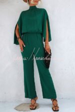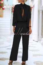 Solid Color Slit Back Lace Up Hollow Long Sleeve Jumpsuit