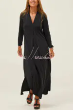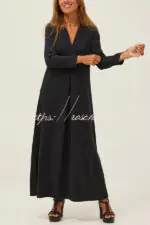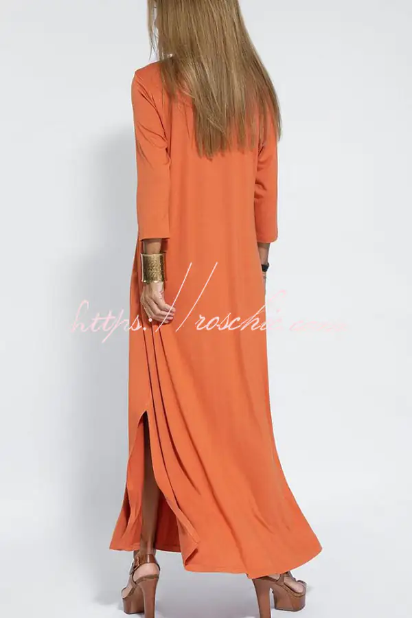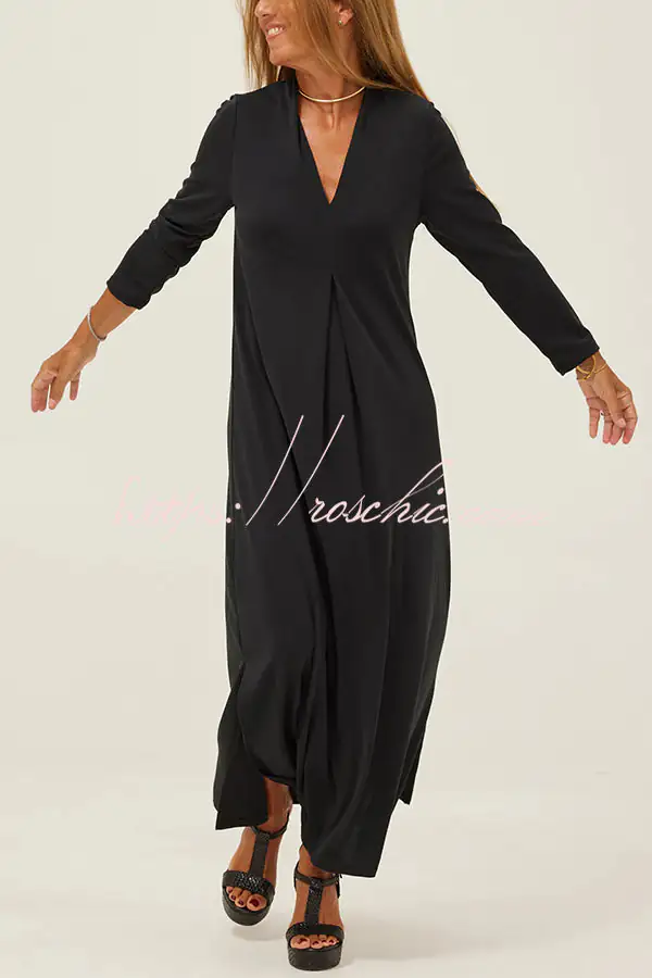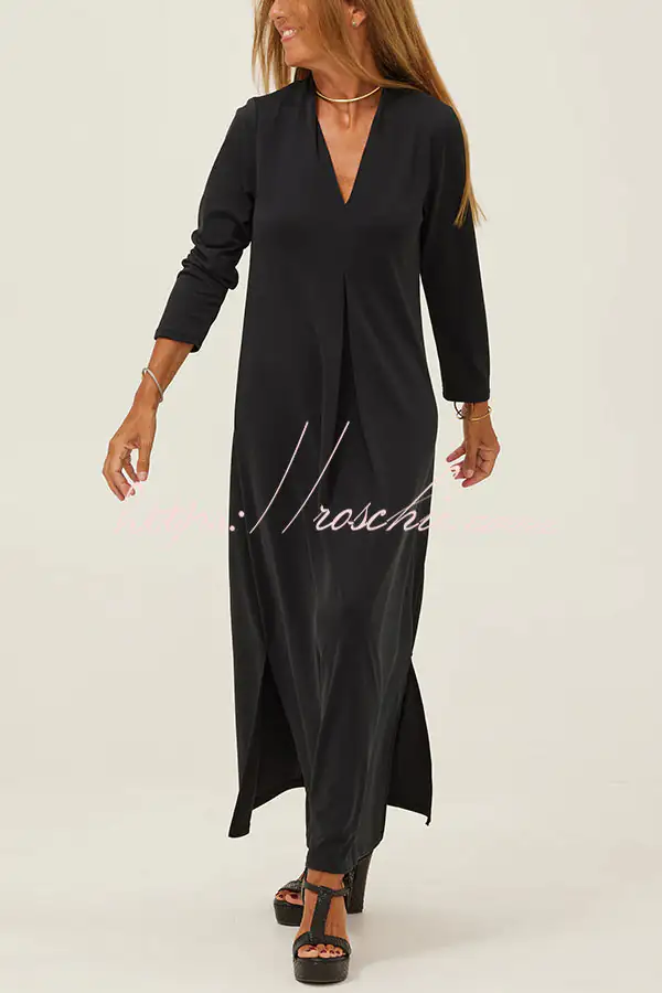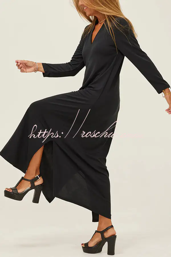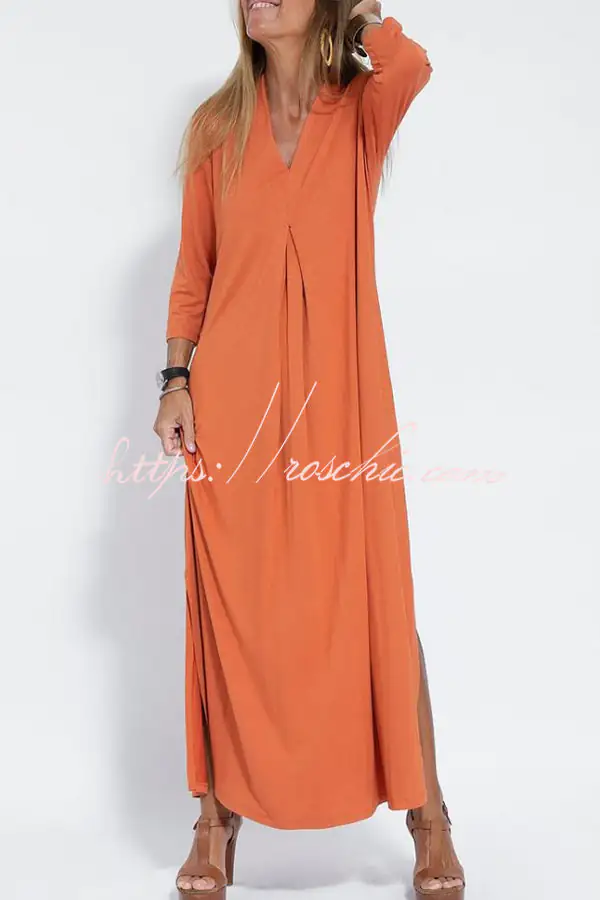 Solid Color V-neck Casual Slit Maxi Dress