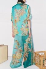 Somewhere Sunny Satin Botanical Print Short Sleeve Button Oversized Blouse