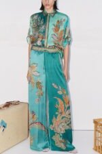 Naya Satin Contrast Color Paisley Long Sleeve Shirt and Elastic Waist Pocketed Pants Set