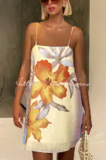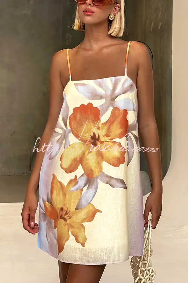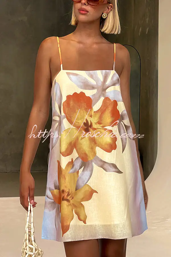 Summer Surprise Linen Blend Floral Print Slip H-line Mini Dress