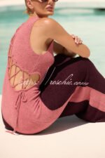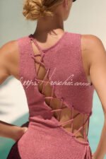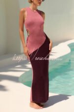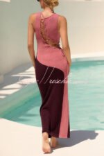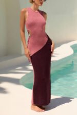Sunday At The Beach Knit Color Block Sexy Hollow Lace-up Cover-up Maxi Dress