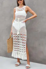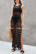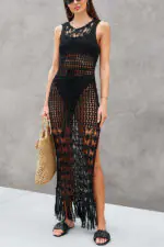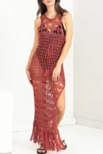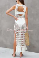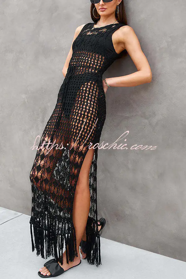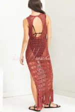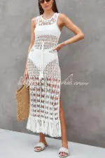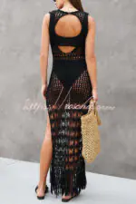 Sunset Cocktail Knit Crochet Tassel Trim Cover-up Maxi Dress
