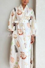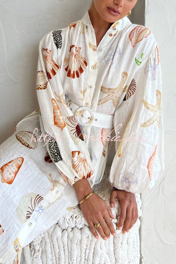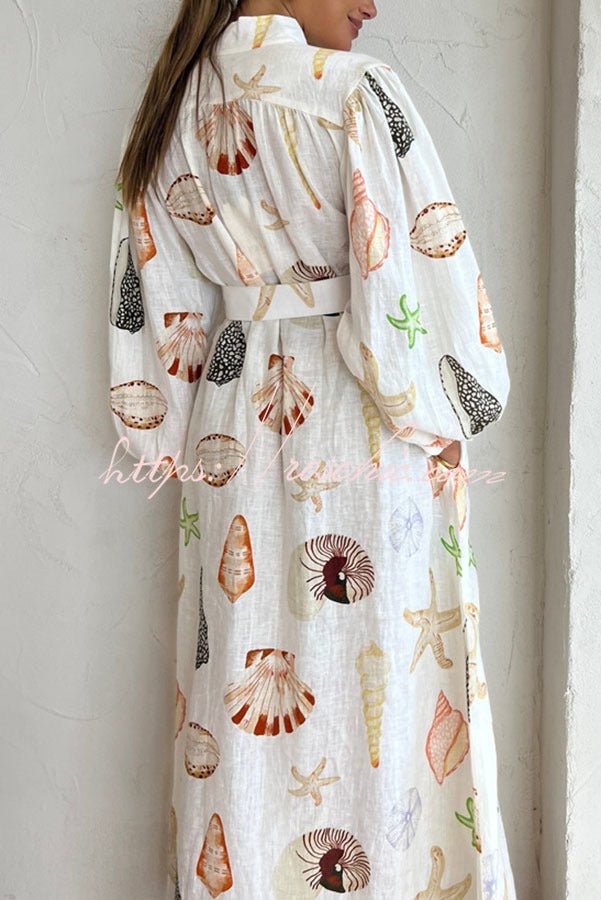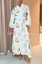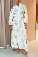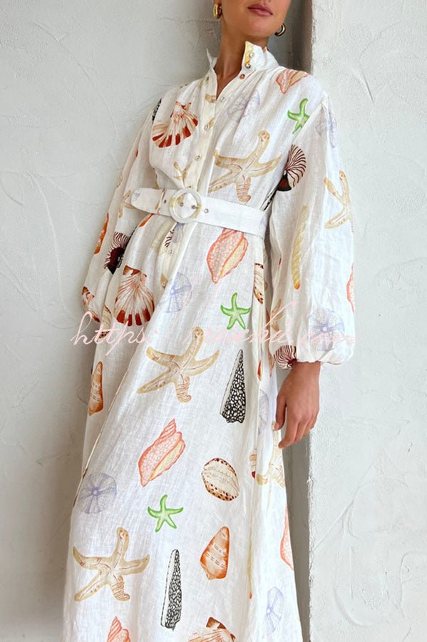 Swinton Marine Element Print Pocket Balloon Sleeve Belted Maxi Dress