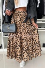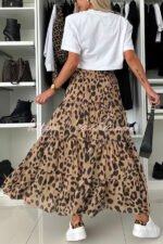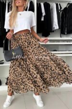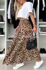 Unique and Comfortable Leopard Print Elastic Waist A-line Layered Maxi Skirt