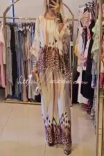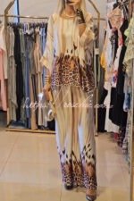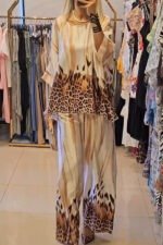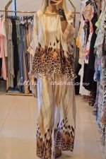 Unique Fashionable Printed Crew Neck Loose Top and Elastic Waist Casual Pants Set