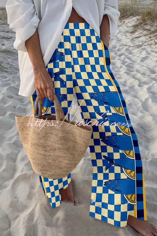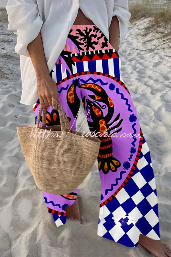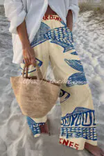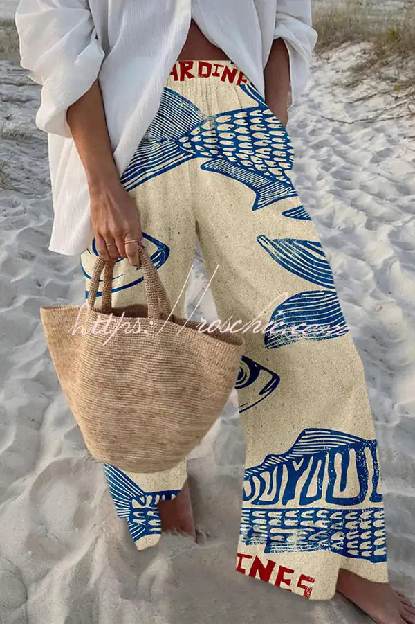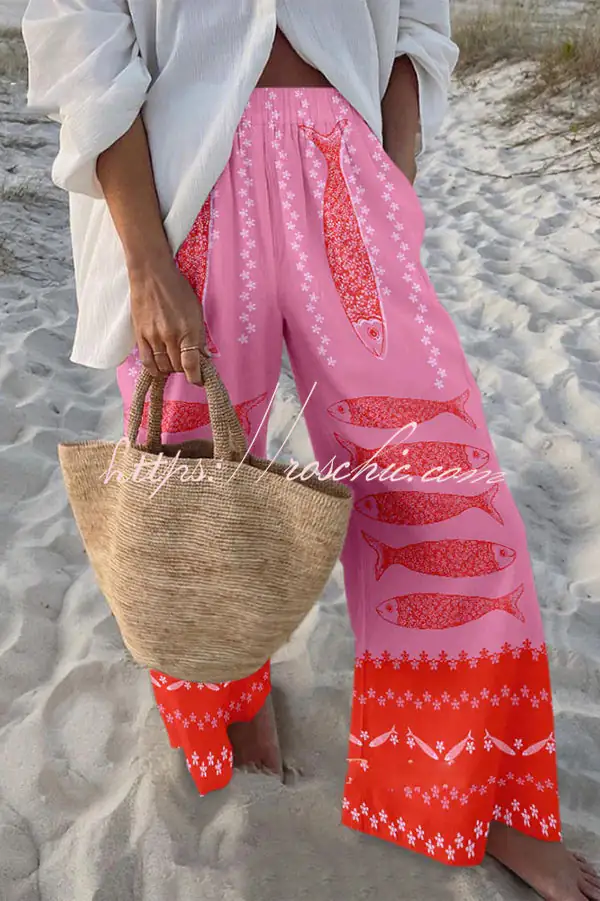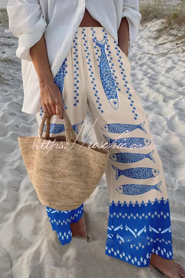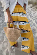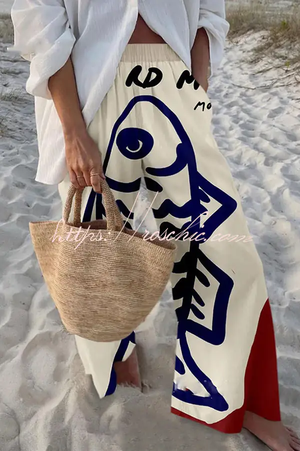 Unique Marine Print Elastic Waist Loose Pocket Pants