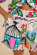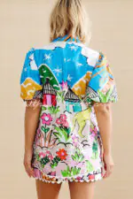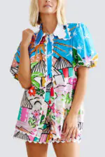 Colorful Cloud Print Loose Button Elastic Waist Shorts Set