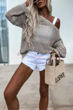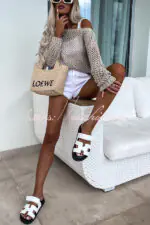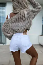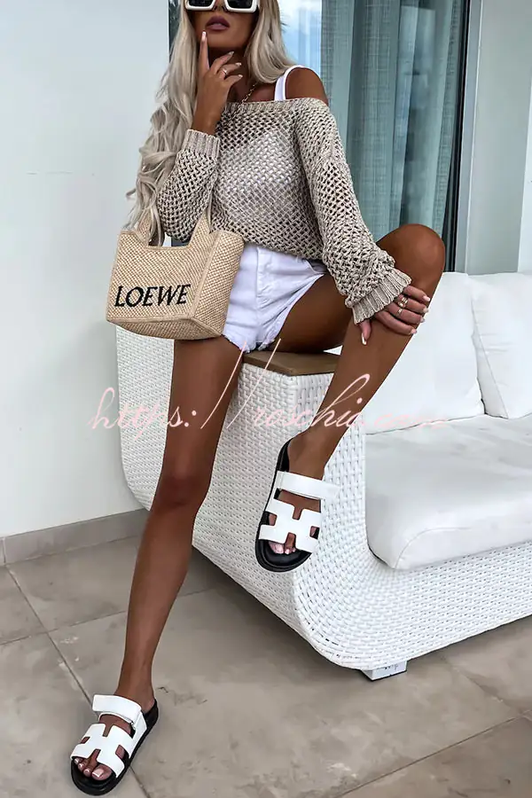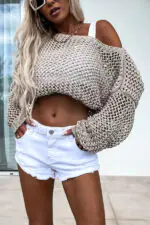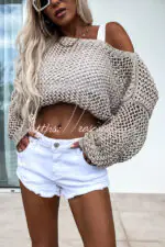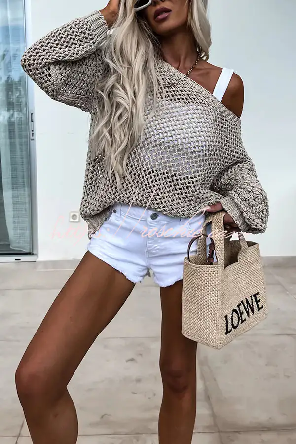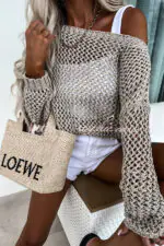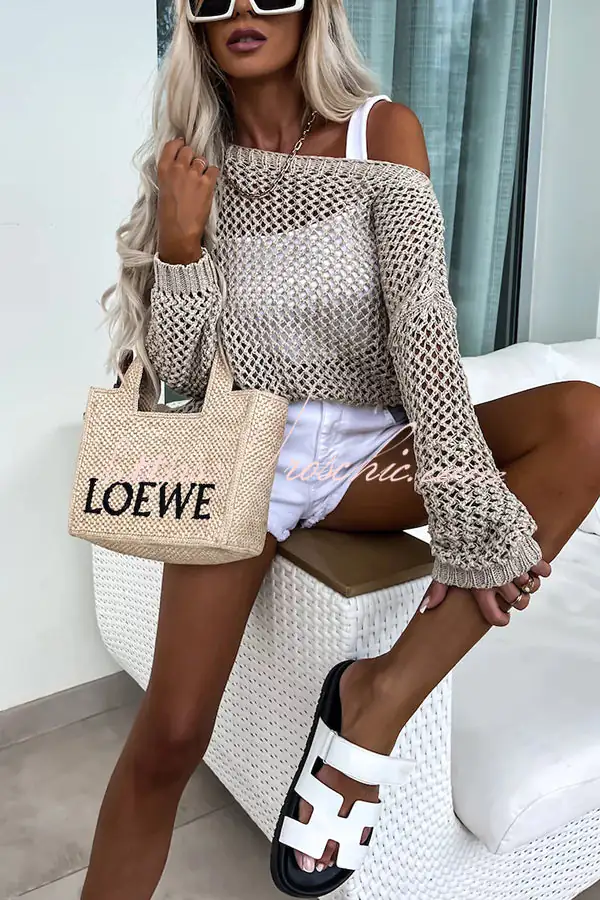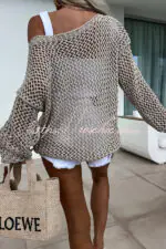 Vacation Beach Cover Up Long Sleeved Hollow Loose Top