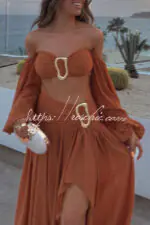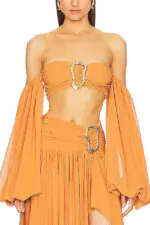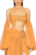 - Embrace the carefree and sophisticated style of a cumin brown crop top. This flowing off-the-shoulder blouse has a cropped silhouette. perfect for a stylish vacation. Whether you’re strolling along the beaches of St. Barts or taking in the view while enjoying a delicious dinner. this stunning piece will have you feeling like a jet-setting style icon.