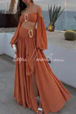 Vacation Chic Off Shoulder Balloon Sleeve Back Smocked Crop Top