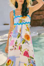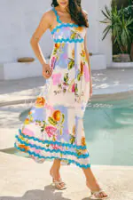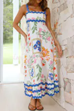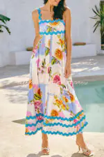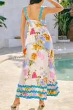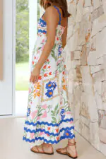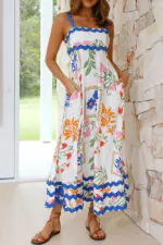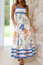Vivi Fruit Floral Print Wave Pocket Maxi Dress