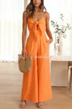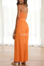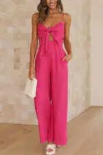 Vrinda Pocketed Adjustable Tie Smocked Back Jumpsuit