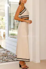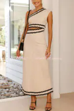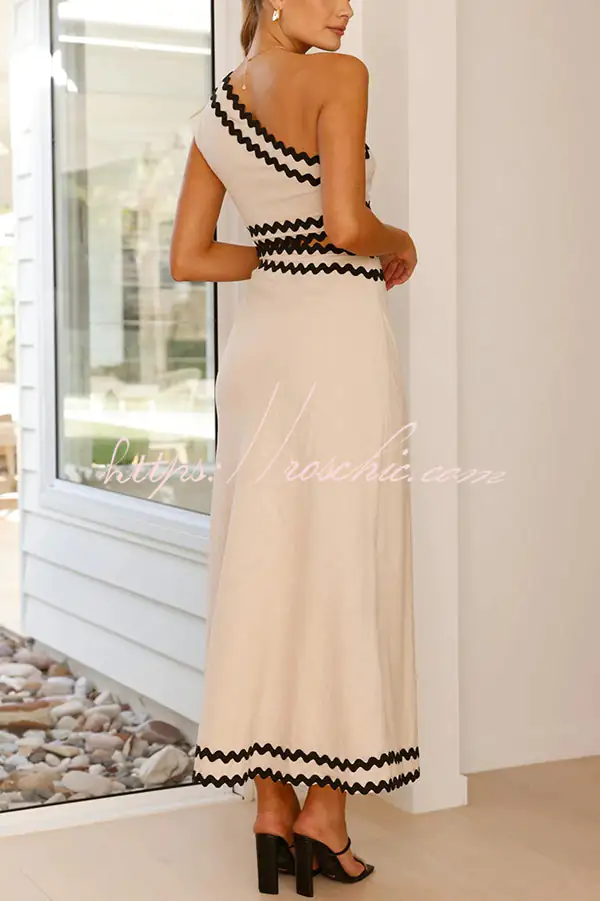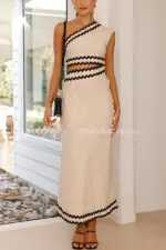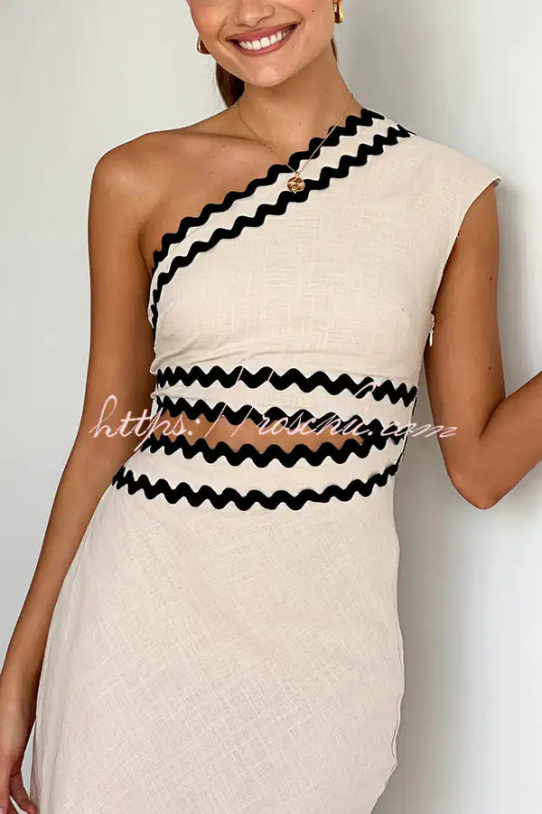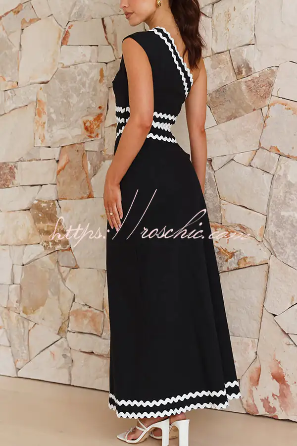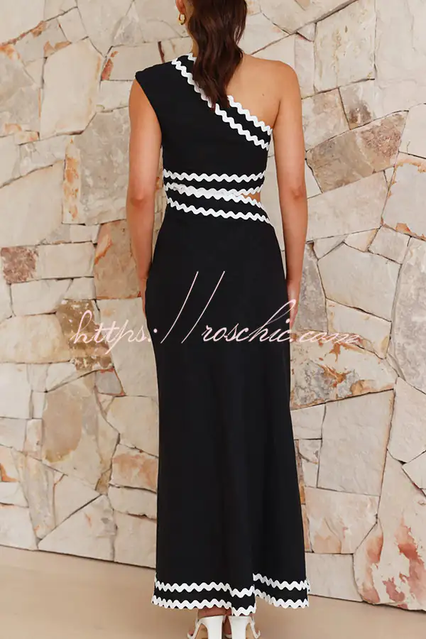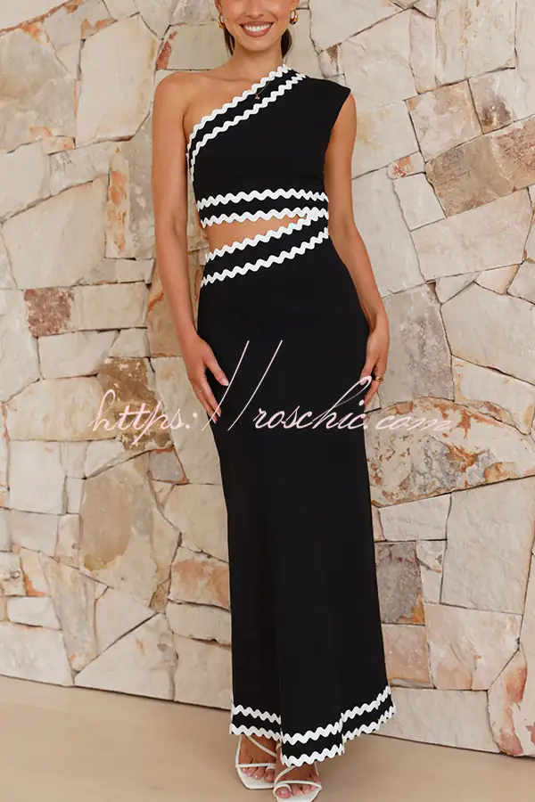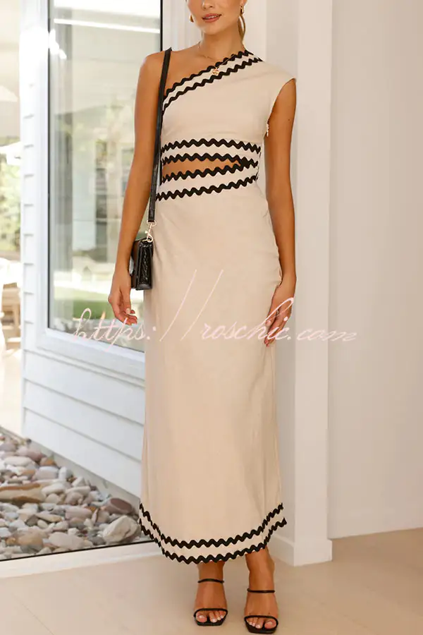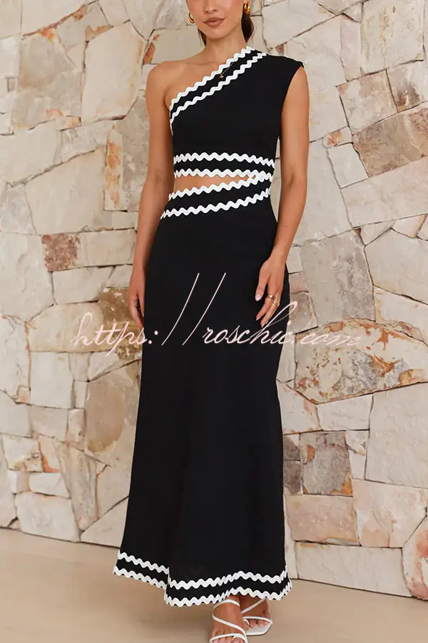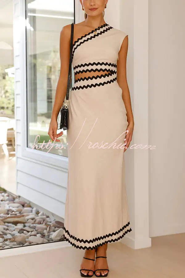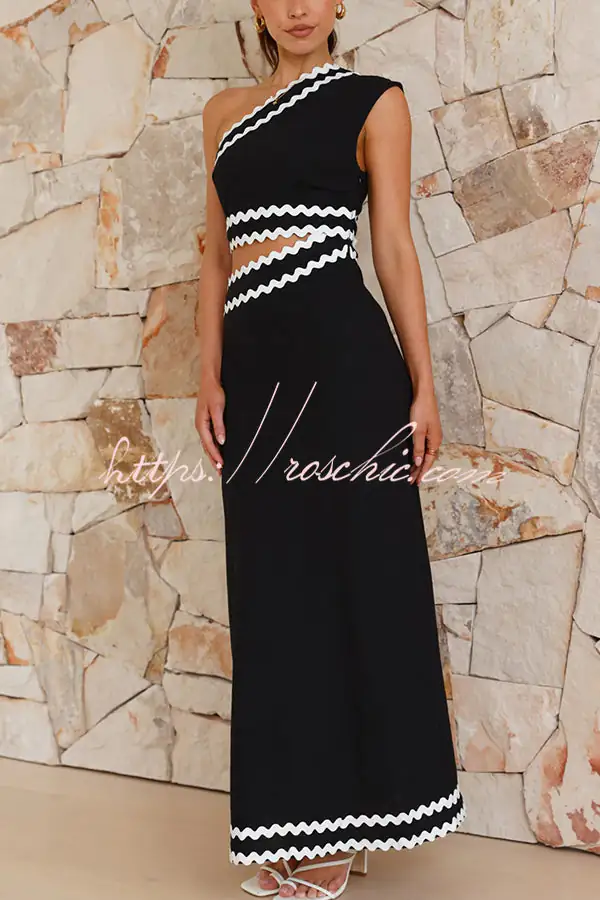 Wavy Lace Waist Cutout One Shoulder Sleeveless Maxi Dress